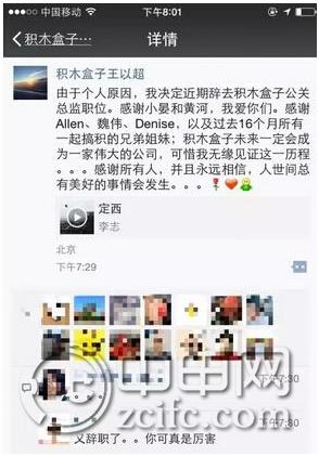 3、积木盒子总裁助理、公关总监王以超离职