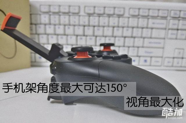 支架角度150°可支持的手机更多 角度够大视角才够宽阔 久玩不累可以观察到握把为颗粒磨砂 玩游戏出汗防滑可是必须的。
