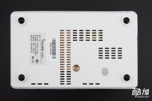 底部为阻燃塑件,密布散热孔和一个脚架固定螺孔,隐约看见内部的散热铜片,高效的散热设计可以有效微投避免卡顿、死机,其实散热设计是十分重要的一环,虽然led光源的发热量远低于传统灯源,但是高温还是会老化塑件、影响光机的整体寿命,还会影响安卓系统部分的运行稳定性,比如某品牌的微投散热没有做好,出风口竟然向下设计,导致设备经常性假死。