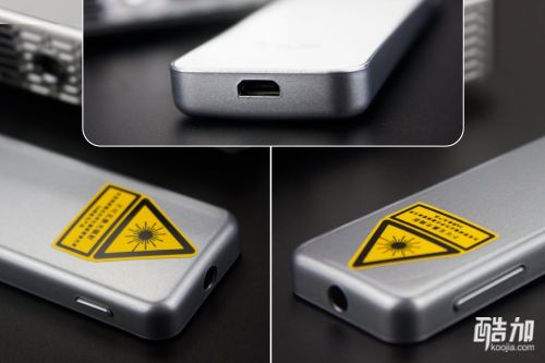 不过遥控器的整体做工确实蛮好,左侧待机键,右侧音量增减键,底部设置了micro usb充电接口,免去了购买纽扣电池的麻烦,前端的红外/激光头因为有人眼难以识别的光线输出,所以标示了不要直射人眼。