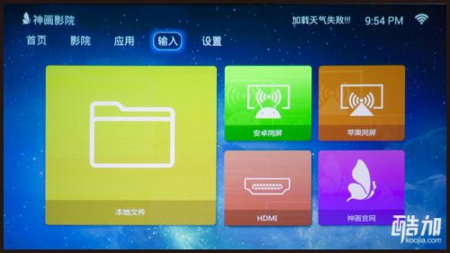 输入:其他非在线视频源,比如本地文件,安卓同屏、苹果同屏、HDMI输入。