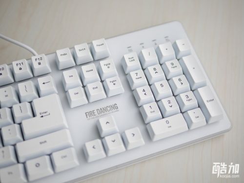 购买的时候我选择的键盘是白色,黑色的键盘用多了视觉疲劳换个口味,白色的看上去比较典雅秀气,比黑色多了一丝优雅和精美感,首席玩家火舞GK3电竞多彩背光类机械游戏键盘采用了104键的全键美式布局设计,很大的L形状回车键,带有数字小键盘,这对于办公、炒股等对输入数字有需求的人们来说平时使用会比较方便,这种大回车按键对于我来说也比较适应。