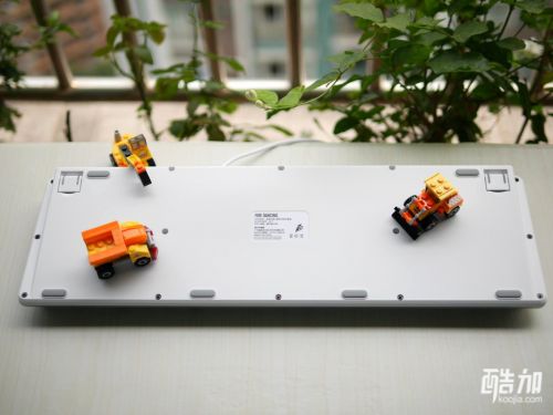 因为有钢板加强的原因,所以键盘的底部螺丝比较多,键盘虽然不是机械键盘,不过键盘也有一定的重量,配有6个防滑脚垫,所以地盘十分稳固,不用担心使用时候滑动。增高支架上也有同样的防滑胶贴,没有吝啬,细节做的很用心。