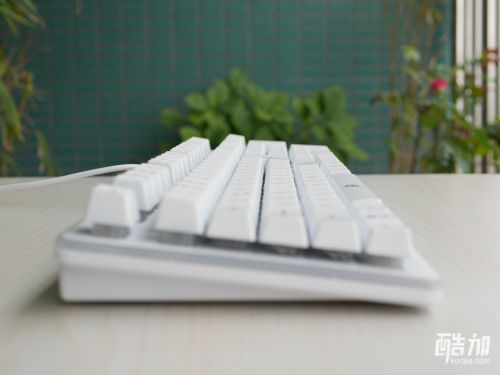 键盘的按键还是常见的前低后高的阶梯排列,就算不使用增高支架也是比较明显,如果放在有手托的键盘抽屉电脑桌里使用非常舒适,完全没必要支起支架。