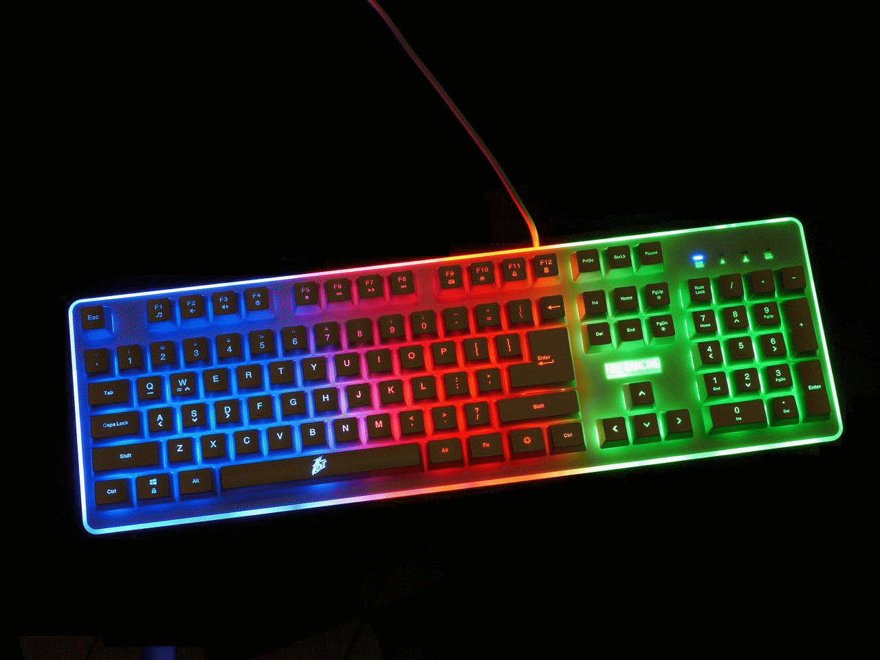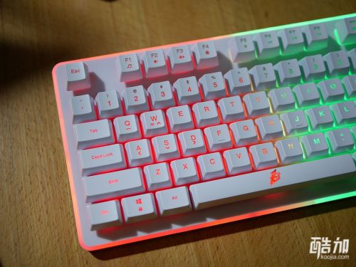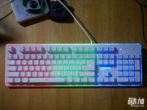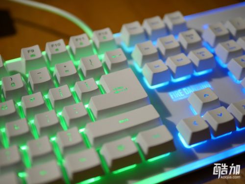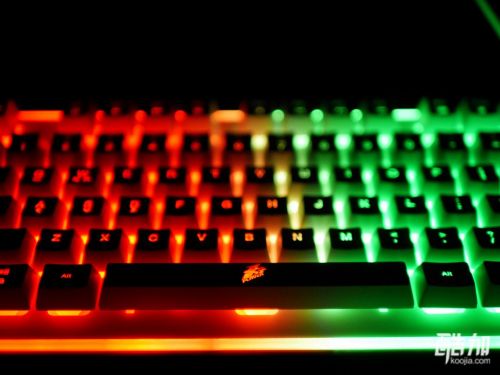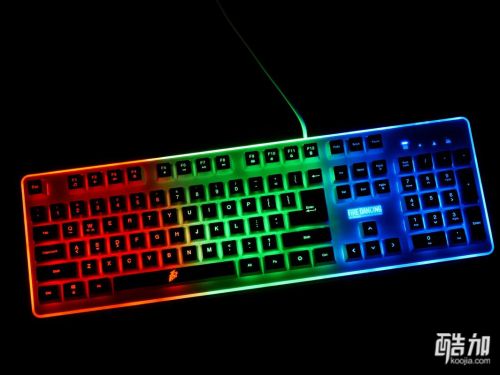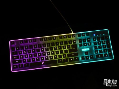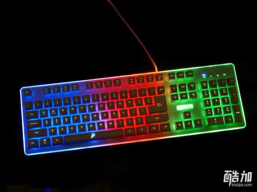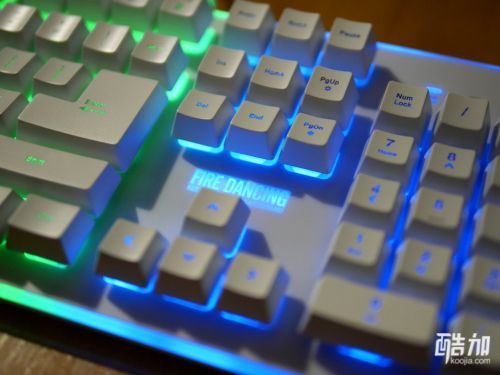 首席玩家火舞GK3电竞多彩背光类机械游戏键盘不光是类机械手感,也是一款七色背光键盘,背光有几种颜色搭配的显示方式,并且有背光常亮、背光变幻呼吸模式、关闭背光三种显示状态,通电以后七彩斑斓十分漂亮,键帽字母的透光性不错,并且透光程度很统一,一起来欣赏下。