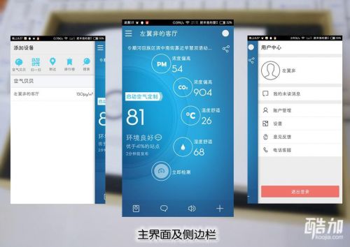 3.手机远程操控,关爱从此没有距离 无论身在何处,都可以通过手机APP查看亲友家的空气质量,用心呵护家人和朋友的健康。