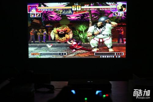这台投影轻巧纤薄,仅厚23.5mm,重0.62KG,运行基于安卓4.4开发的GMUI系统,4核1Ghz处理器,Mali-450MP2GPU,1G运存,内置8G eMMC高速闪存,标准分辨率为WVGA 1280×720,兼容1080P以及2K分辨率,可以说以这样轻薄的大小来说,这个配置也算是不错的